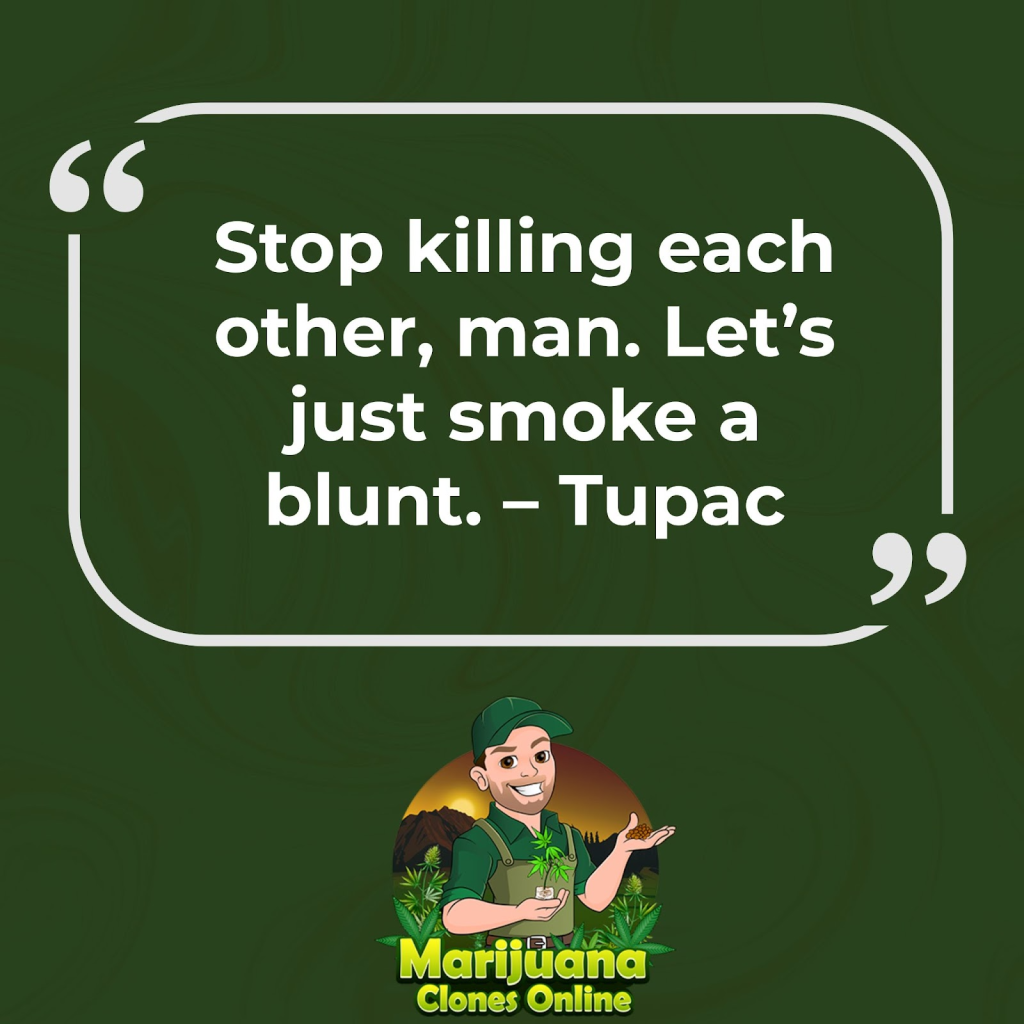 This quote mixes activism with peace-pipe energy. Tupac’s voice still carries weight, and this simple line transforms weed into a tool for unity in a world that desperately needs it.