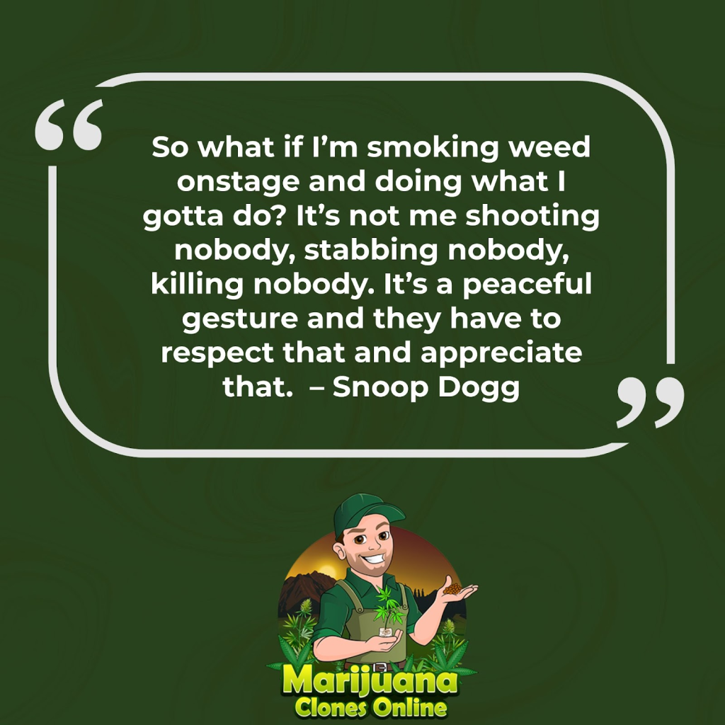 This quote cuts through stigma and reclaims the narrative. Snoop reframes weed not as rebellion, but as peace. His logic is hard to argue, and deeply rooted in real-life cannabis culture.